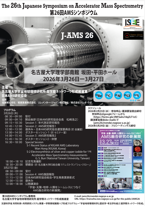 第26回AMSシンポジウムのご案内 : 2026年3月26日(木)〜27日(金)於名古屋大学理学南館 坂田・平田ホール